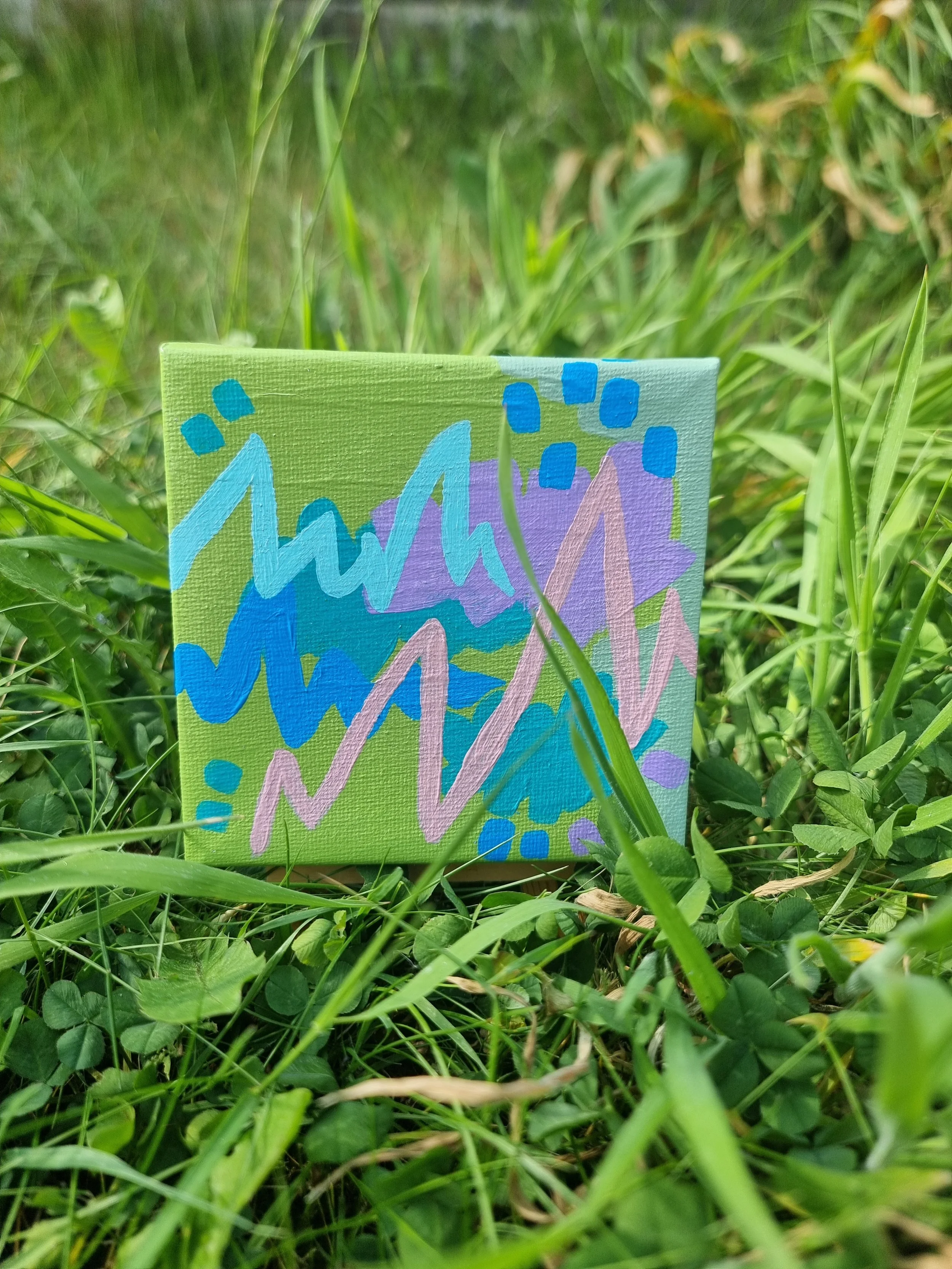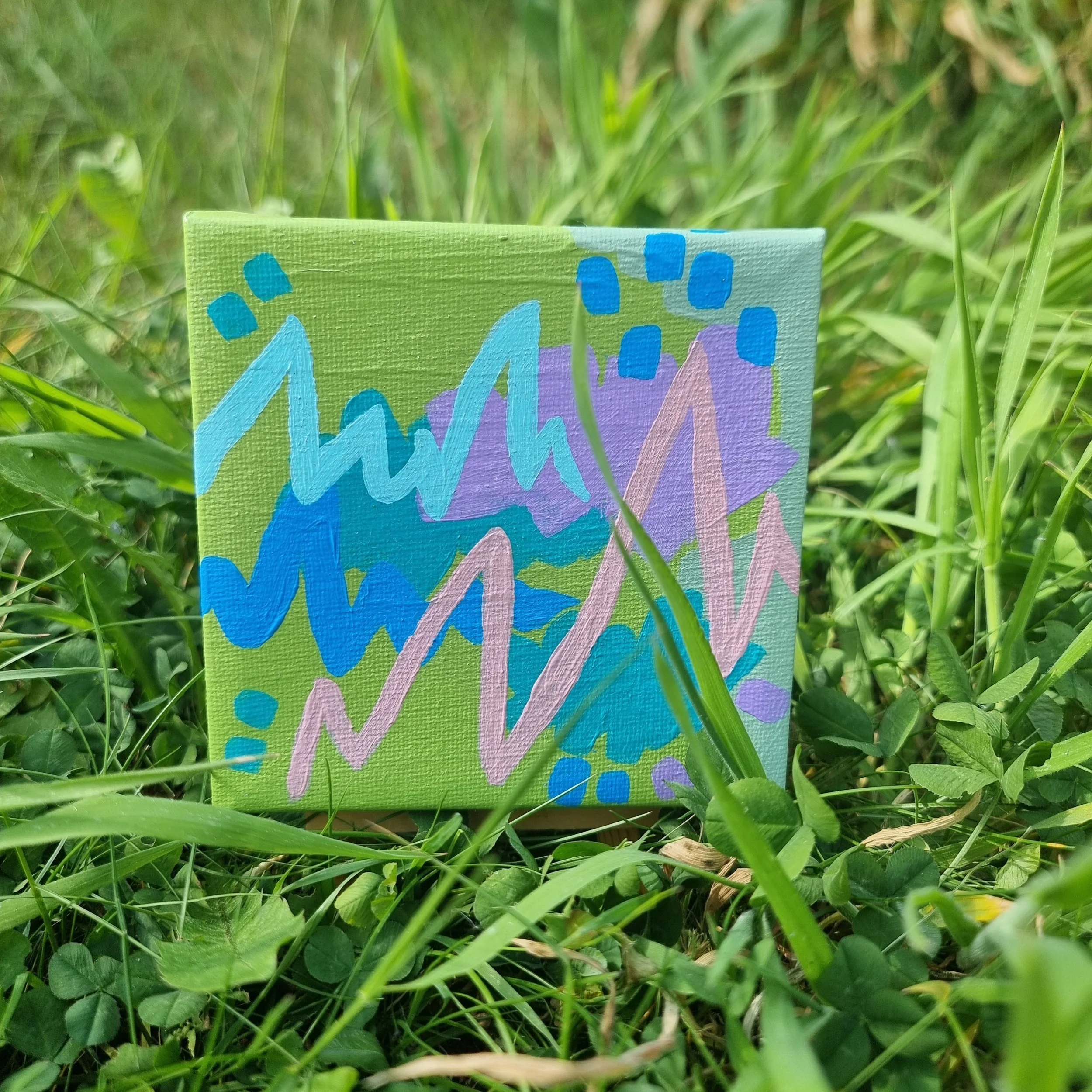 Made in acrylic paint with elements of oil pastel on a 10x10cm canvas, this tiny painting is a personal favourite from my miniature abstract collection.